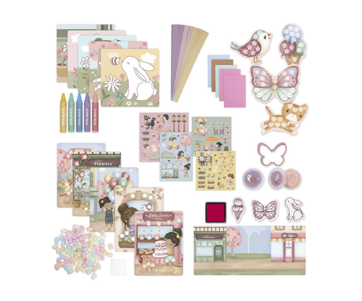 - Incluye: pegatinas, papel para dibujar, crayones de cera, foam para modelar, sellos